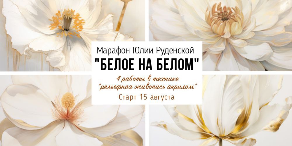 Создайте серию интерьерных картин в технике рельефной живописи по авторской методике Юлии Руденской. Референсы созданы специально для курса "Белое на белом"!