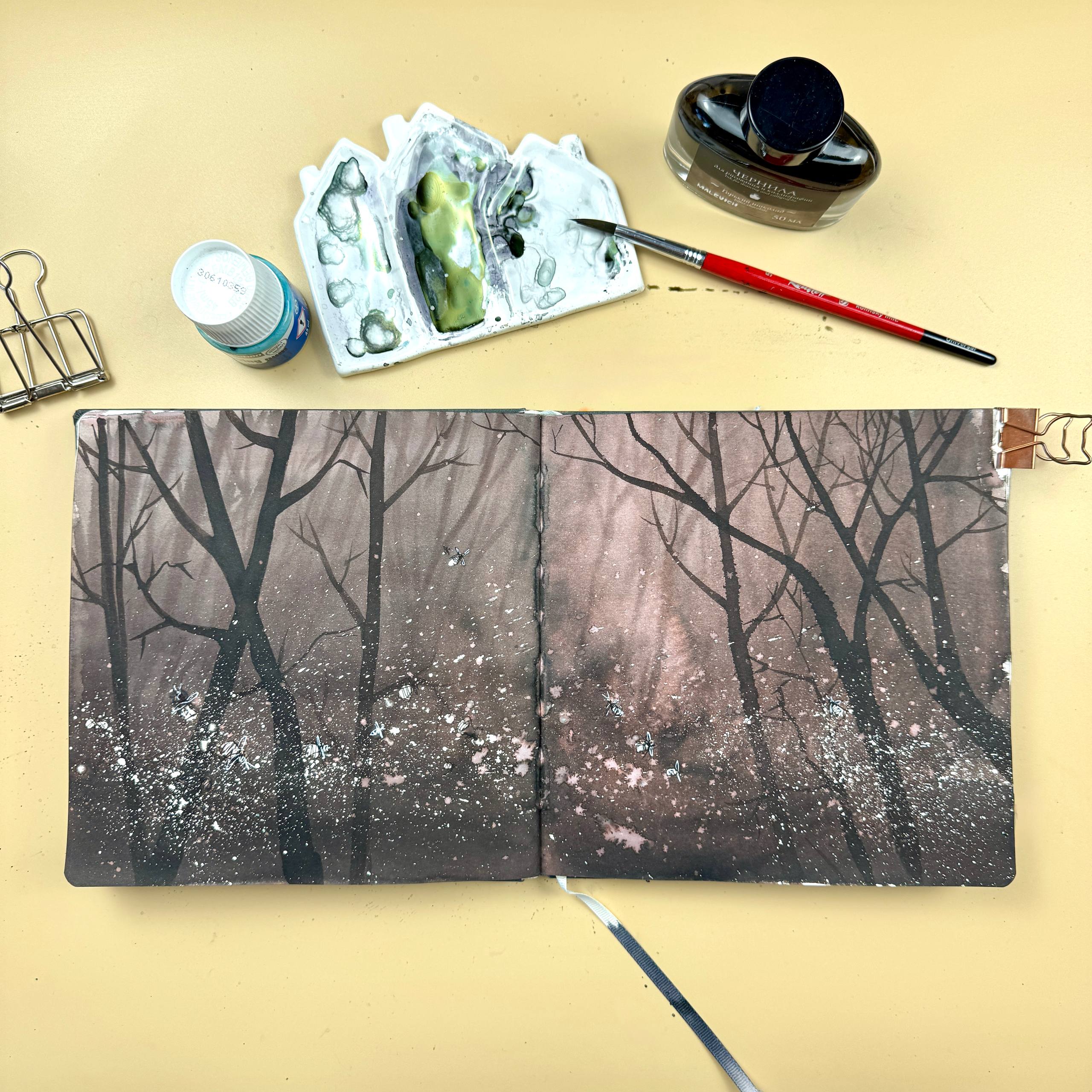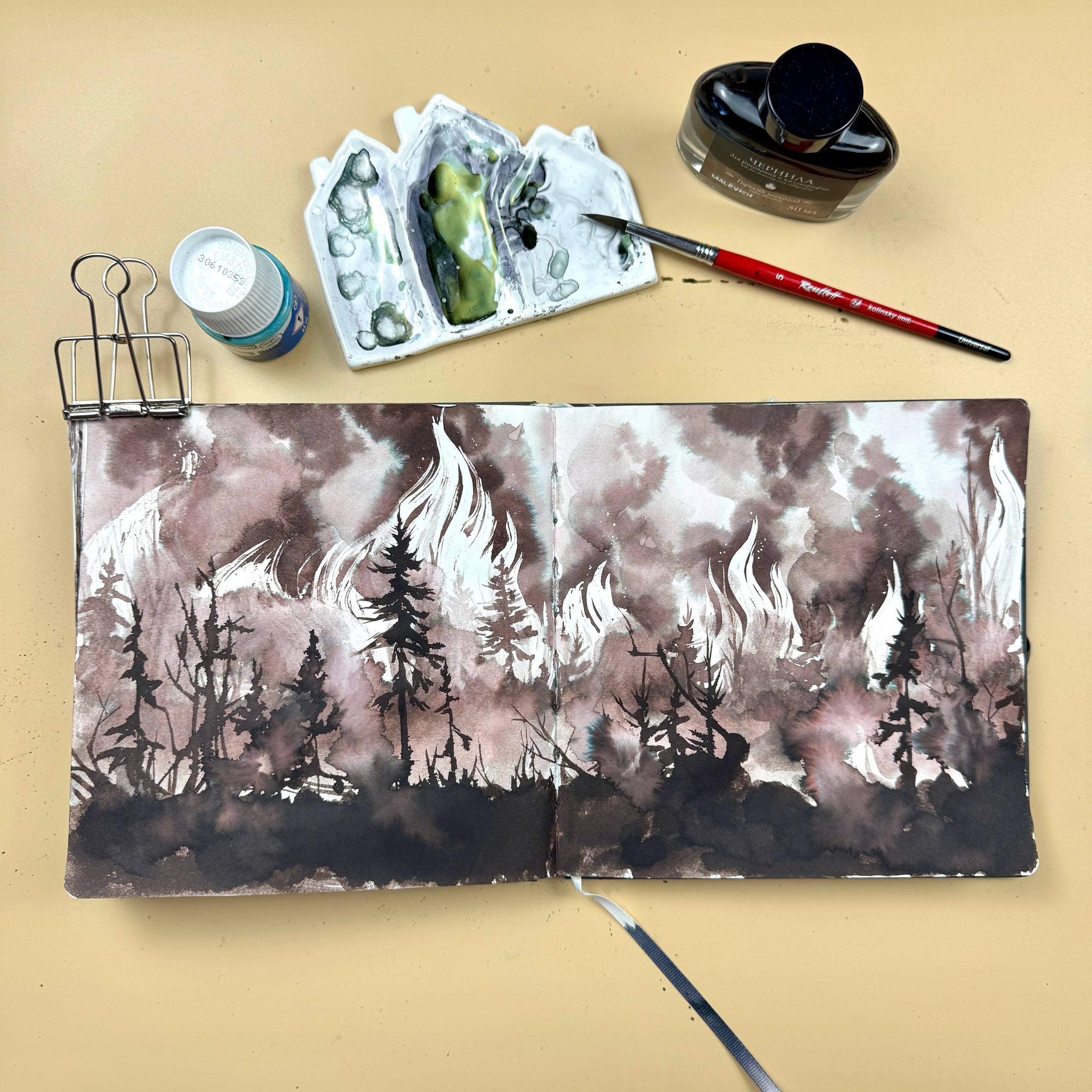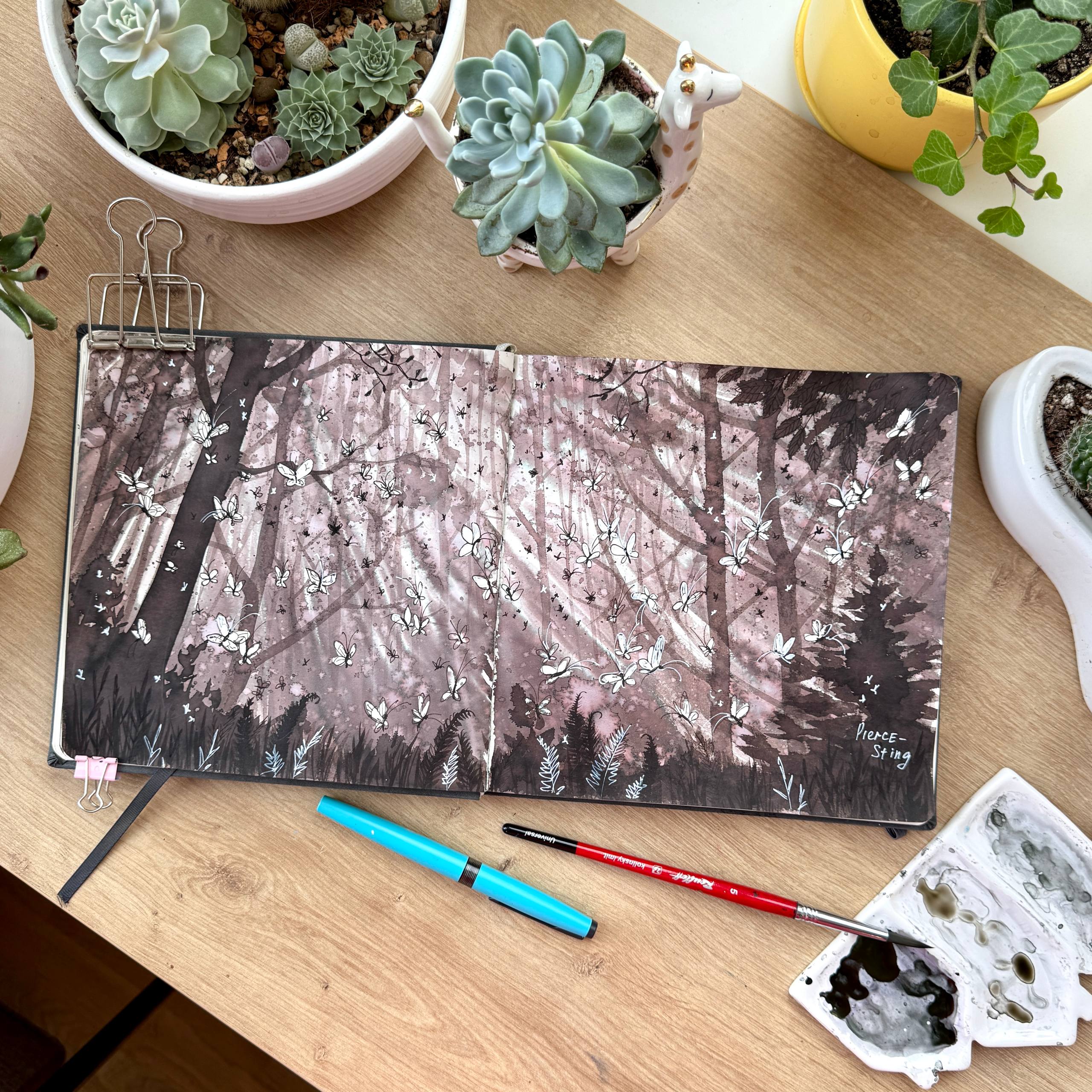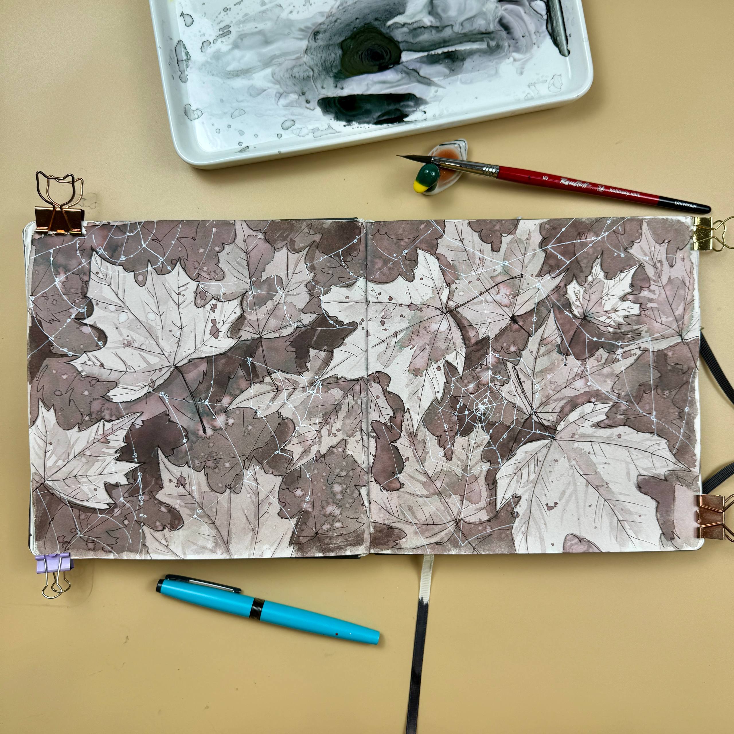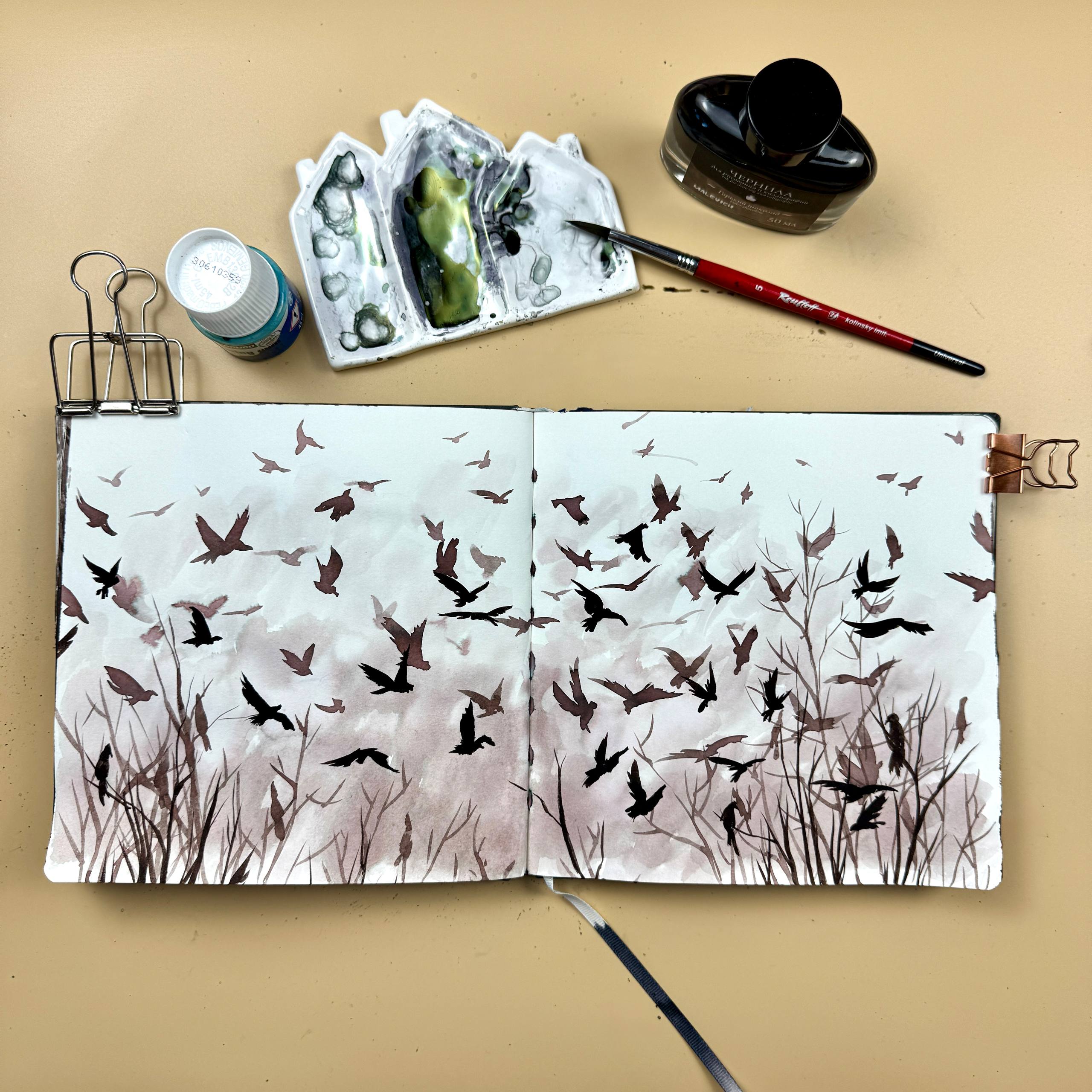 Каждый разворот скетчбука — отдельная история: от мха на дубе до шторма у скал, от полёта птиц до хрупких цветов. Мы будем рисовать в технике гризайль, работать только со светом и тенью, создавая атмосферный арт-скетчбук в духе Inktober.