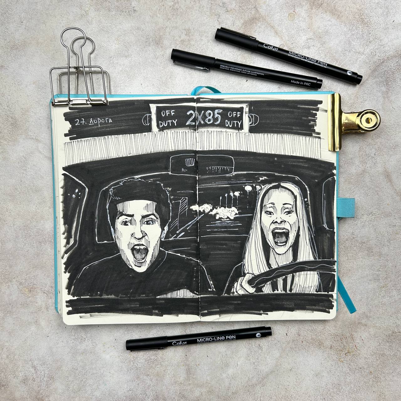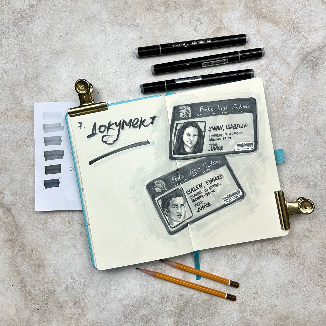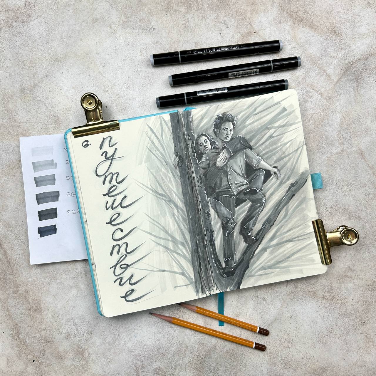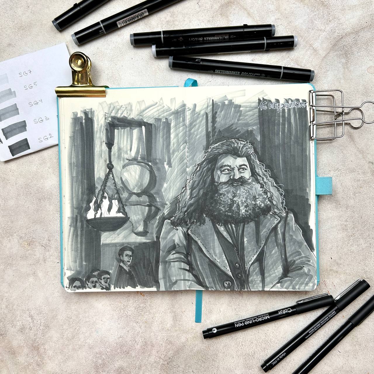 В первую неделю Инктобера используем: простые карандаши, спиртовые маркеры (градиент серого), линеры