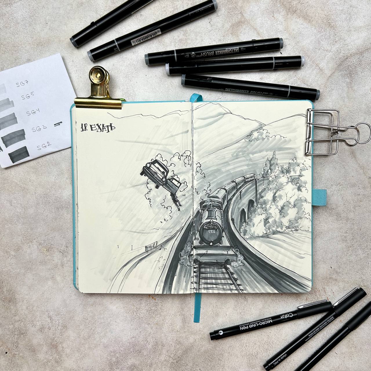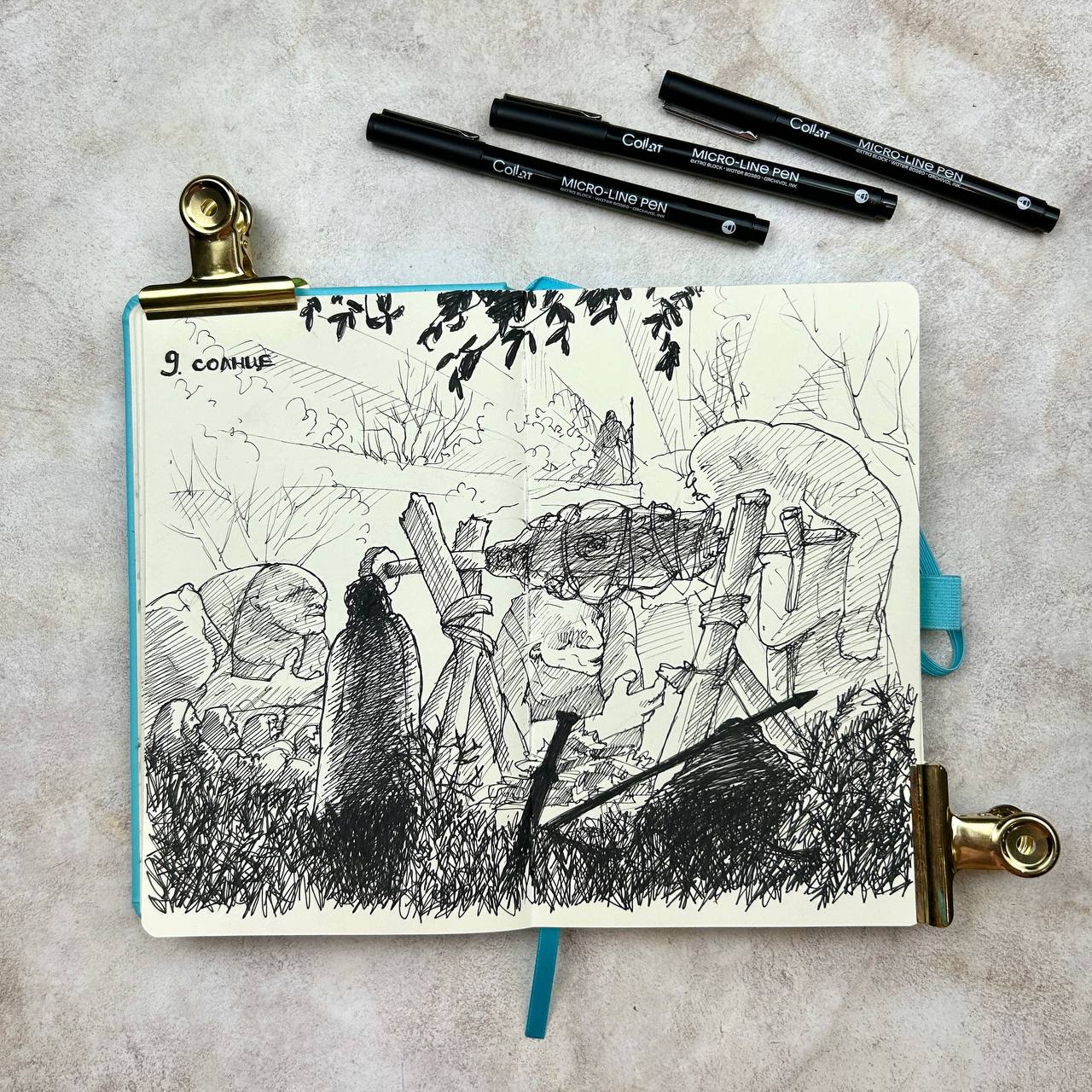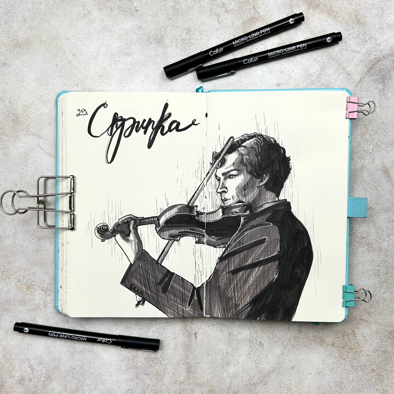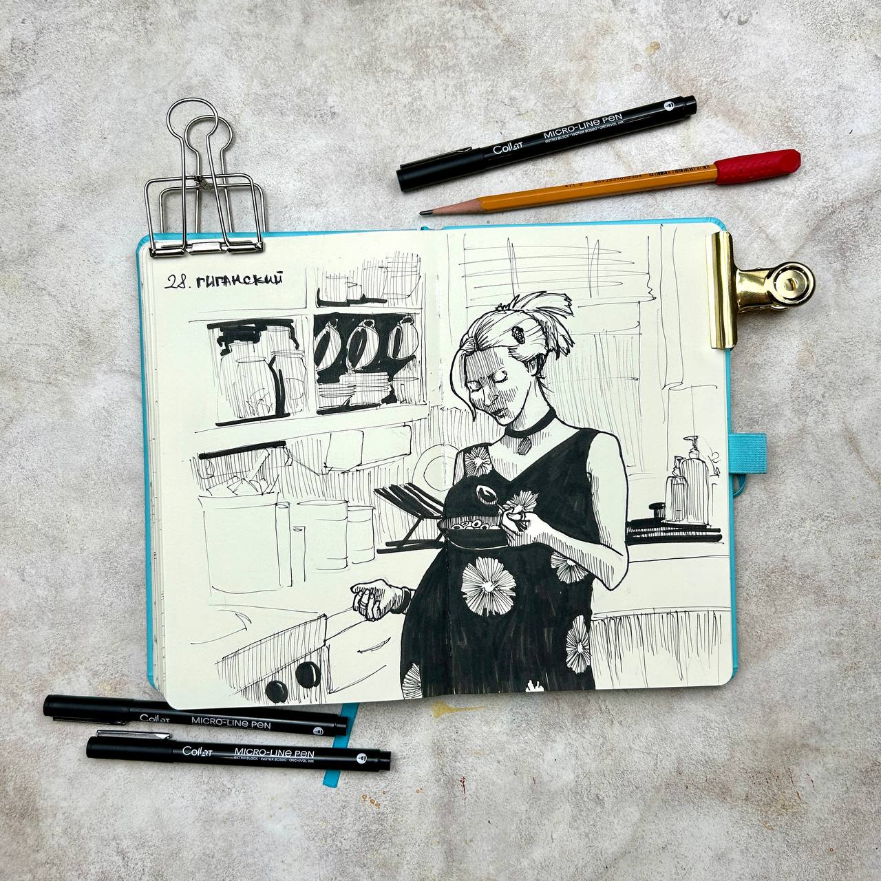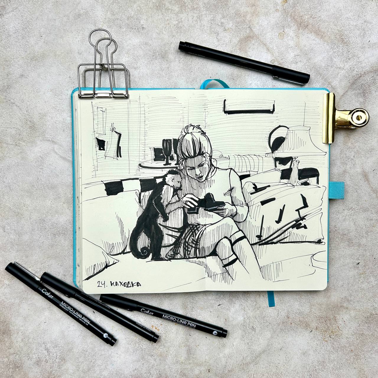 ✓ Используем расширенный список материалов, оставаясь в общем стиле монохромного октября (например, в первую неделю возьмем маркеры, чтобы получить прекрасные серые градиенты, также вас ждут любимые скетчи с линерами)