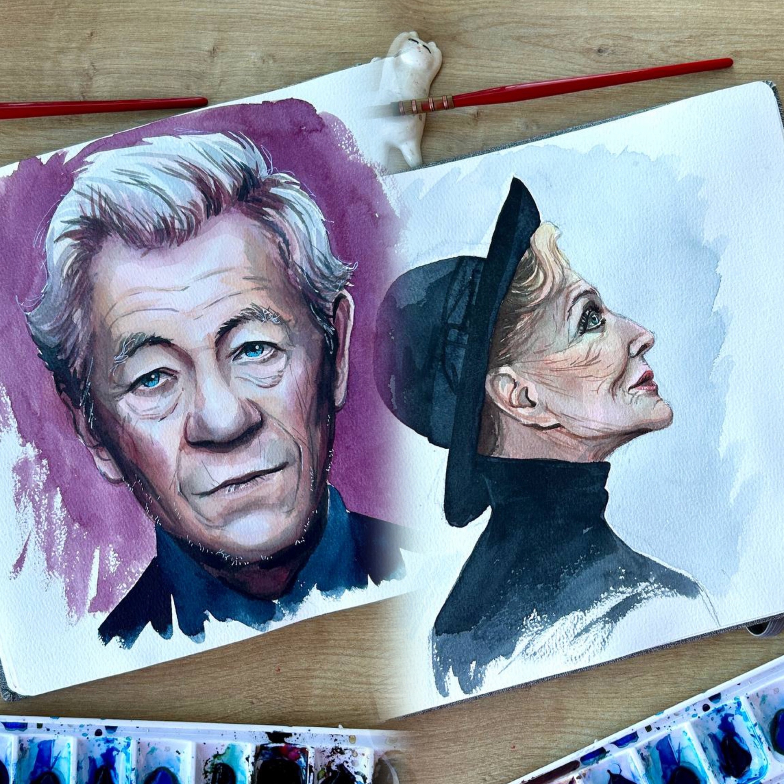 Рисуем акварелью возрастной портрет: мужской анфас, женский профиль