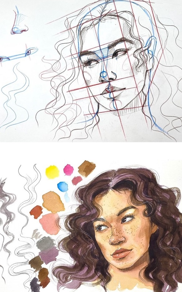 - 3 способа создания скетч портрета , используем линер, акварель, цветные карандаши и акрил/гуашь