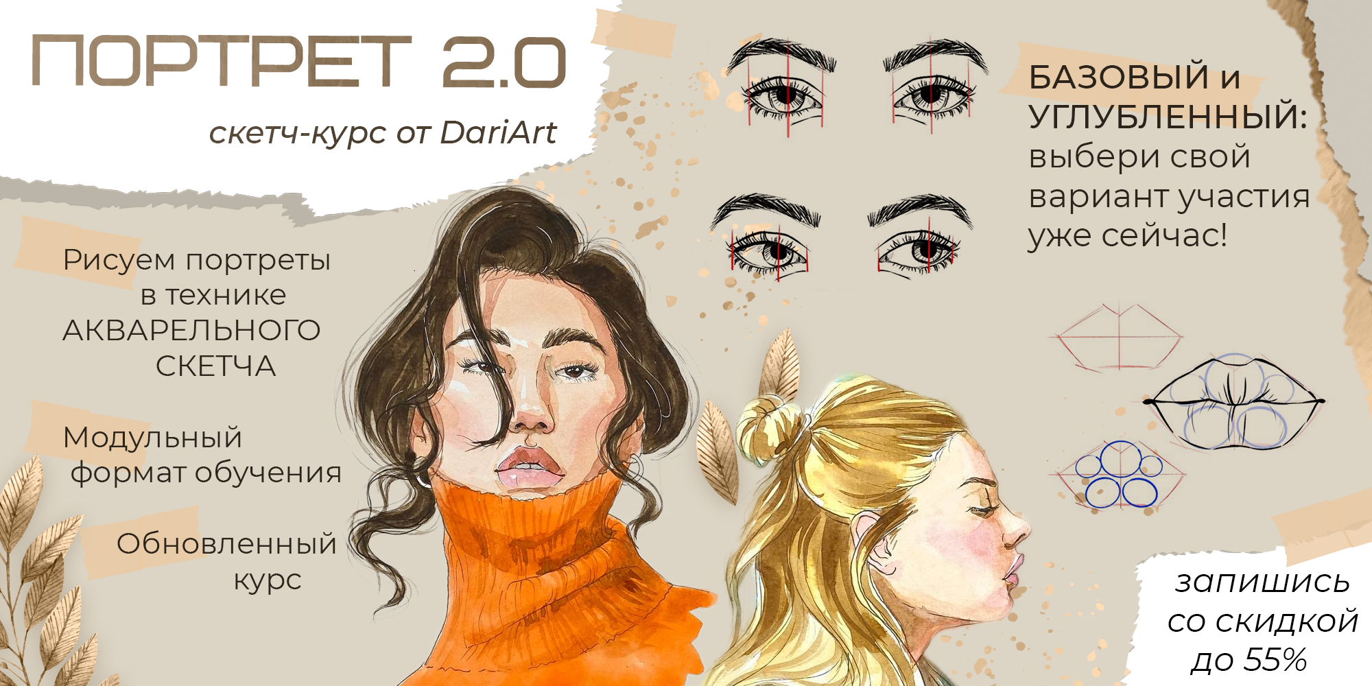 Курсы "Скетч - портрет" и "Скетч - портрет 2.0" - это интересные, несложные программы, которые познакомят вас с темой портретов акварелью и помогут создать интересные работы.