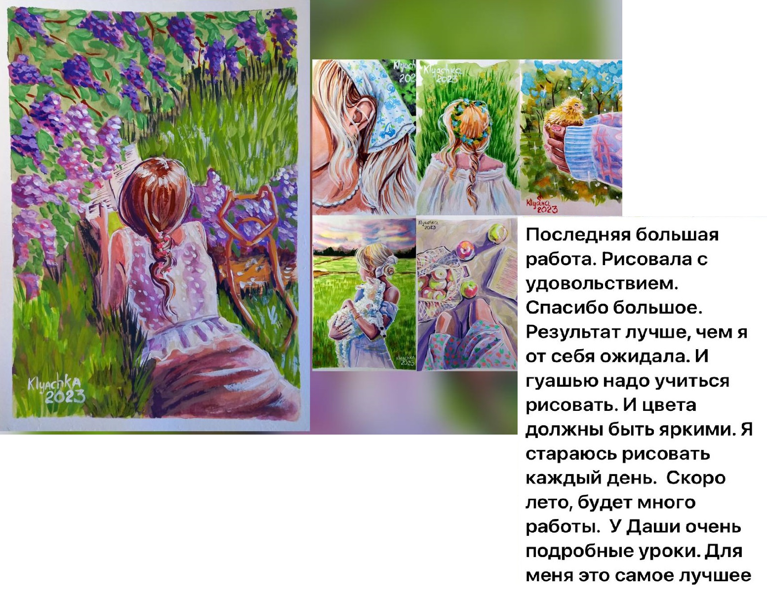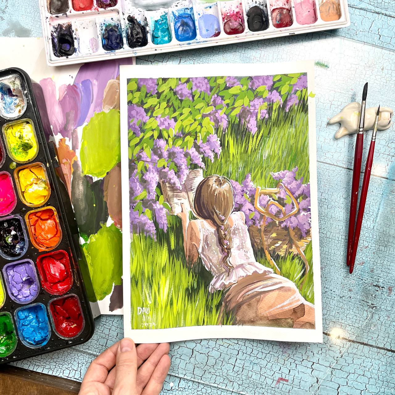 - закрепляем навык и рисуем сюжет с девушкой и сиренью