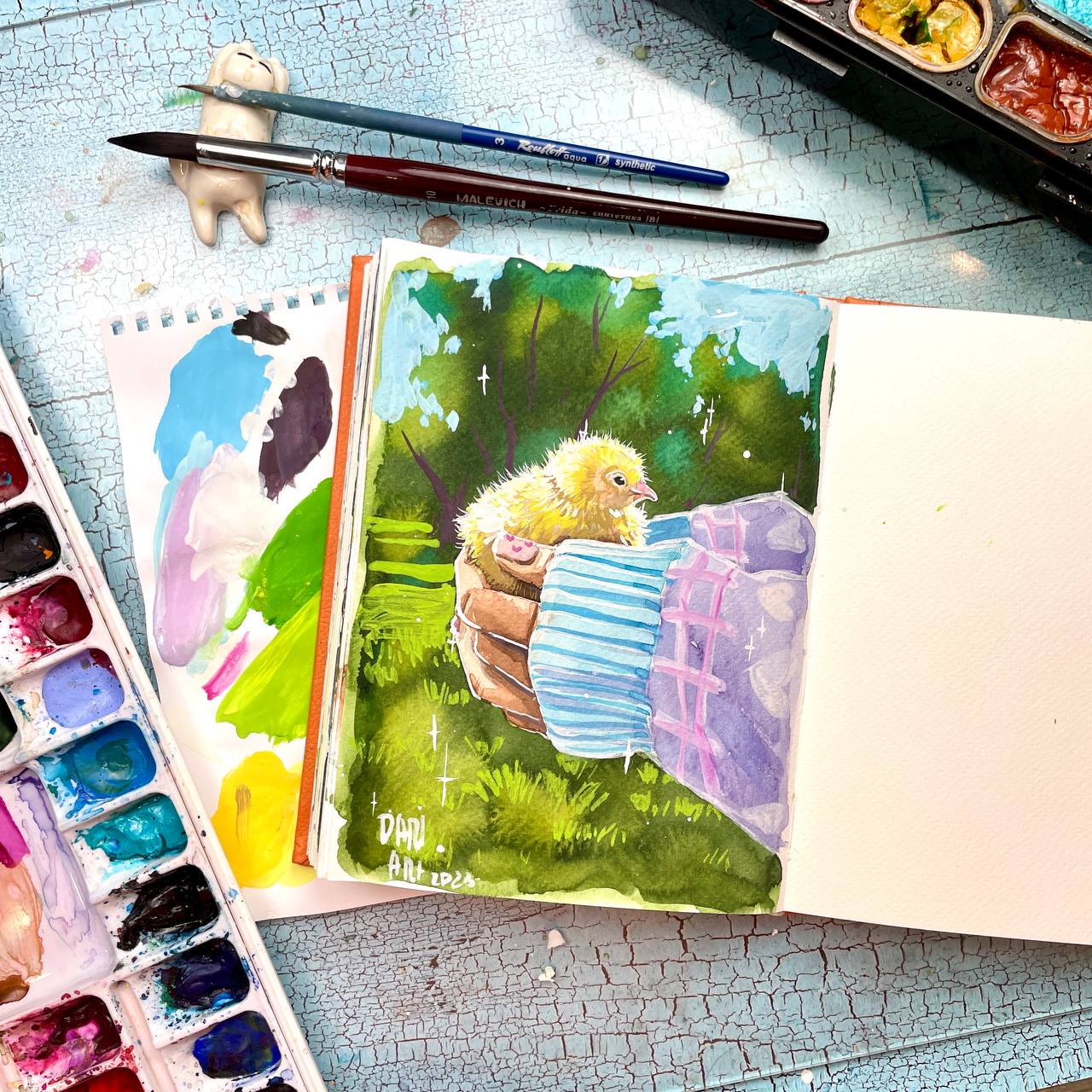 Как создавать акварельный слой рисунка, как, когда и куда добавить гуашь, чтобы сделать рисунок более интересным.