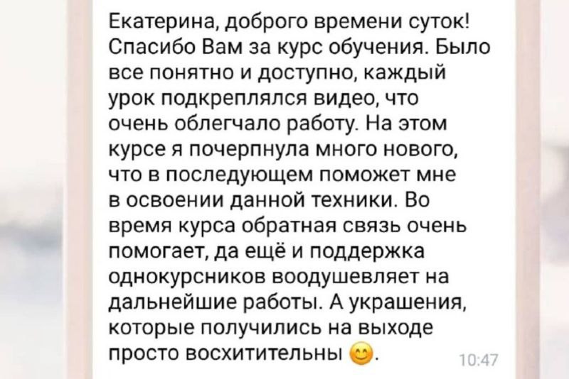 По итогам курса создадите собственную коллекцию украшений в разных техниках
