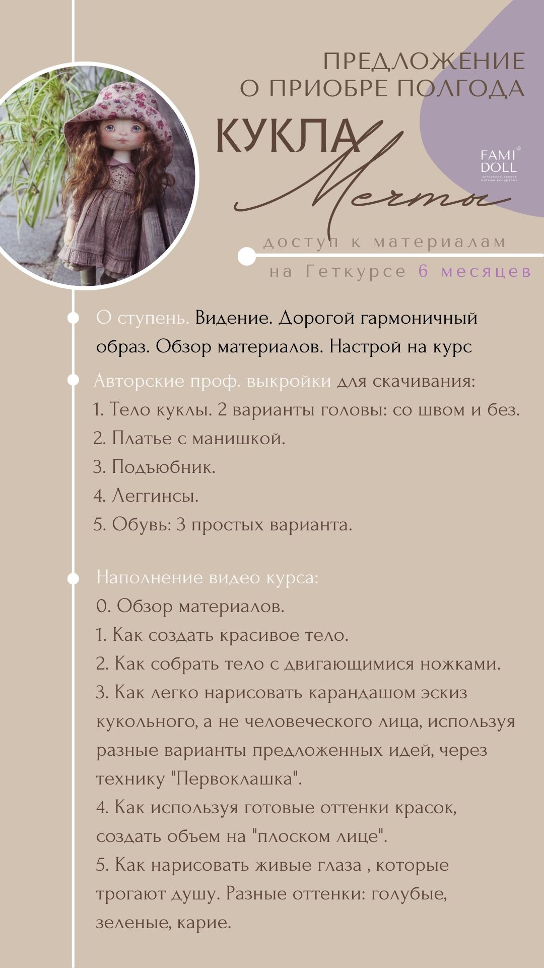 Семейная школа куклы FAMIDOLL была основана в 2019 году для того, чтобы Ты, которая случайно влюбилась в куклы, могла с лёгкостью создать свою первую куклу и окунуться в Мир волшебства, используюя 10-летний опыт в куклах основателя школы —