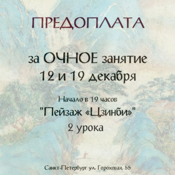 Предоплата за мастер-класс Пейзаж "Цзинби".(2 урока) Уроки состоятся 12 и 19 декабря 2023 г. в 19:00 (вторник)