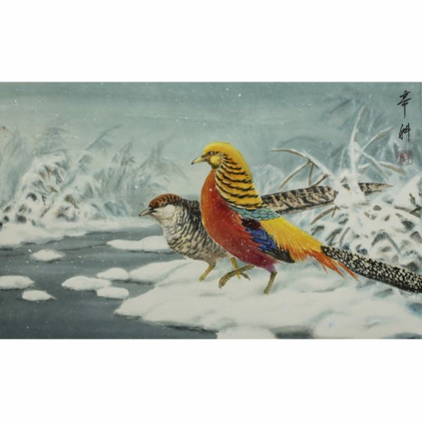Картина "Золотые фазаны", размер работы - 60х36 см