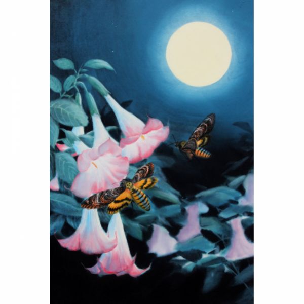 Картина "Ночной пейзаж с бражниками", размер работы - 59х39 см