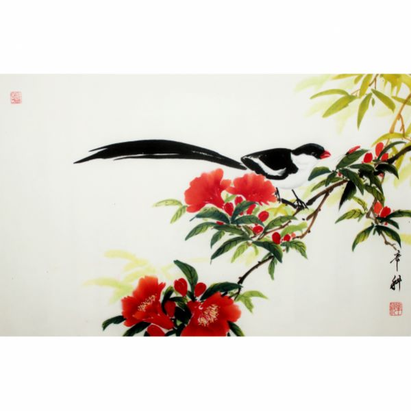 Картина "Цветущий гранат и птица", размер работы - 65х40 см