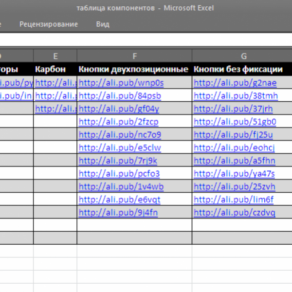Таблица электронных компонентов для сборки преобразователей напряжения
