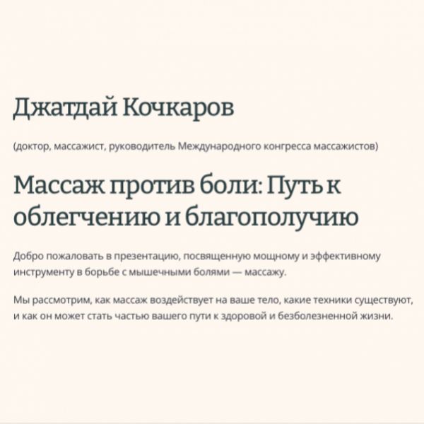 Вебинар Массаж против боли. Джатдай Кочкаров