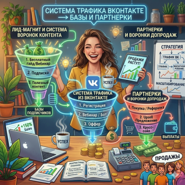 Система трафика из ВКонтакте в базы и на партнерки.