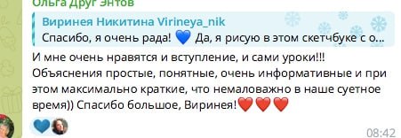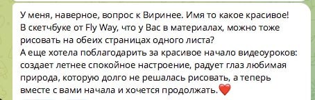 В учебном чате вы сможете общаться с коллегами-художниками, задавать вопросы, делиться работами. Программа школы направлена не только на обучение, но и на развитие вашей творческой самостоятельности, и мы уверены, что в потоке вам будет легко и уютно.Виринея, сама будет рисовать с натуры и атмосфера настоящего летнего пленэра будет вдохновлять всех участников июньского потока.